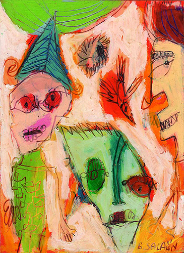 Sans formation initiale ma démarche reste simple : je fais ce qu'il me plait, peindre et dessiner sont devenus un besoin permament. Je travaille à mon rythme sans filet, à l'humeur du jour. Je me suis construit un univers remplit de personnages filiformes, pantins, rêveurs naviguant dans un espace coloré. J'utilise l'acrylique, la glycéro sur bois et le pastel à l'huile sur papier. Je suis un peintre heureux. Site Web : www.bruno-salaun.com - E mail : bruno-salaun41@orange.fr Bruno Salaün - 19 rue du Béarn - 41000 Blois - Tél. 02 54 56 00 21